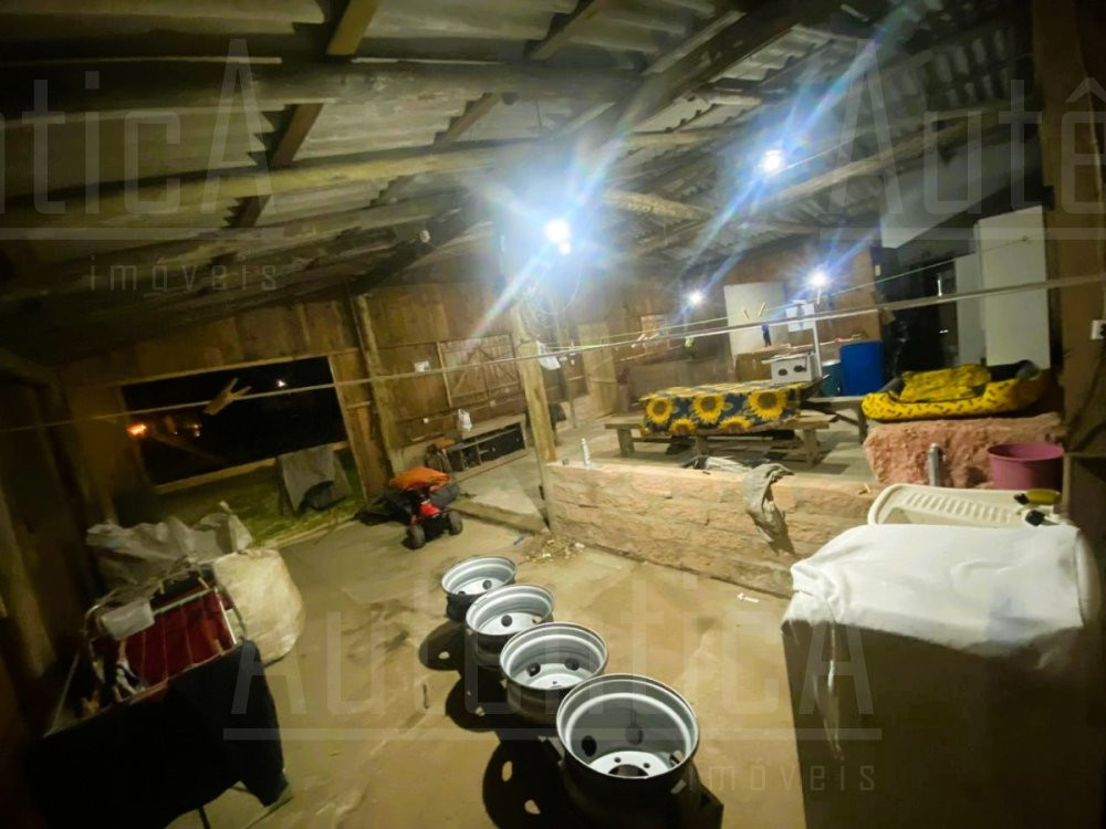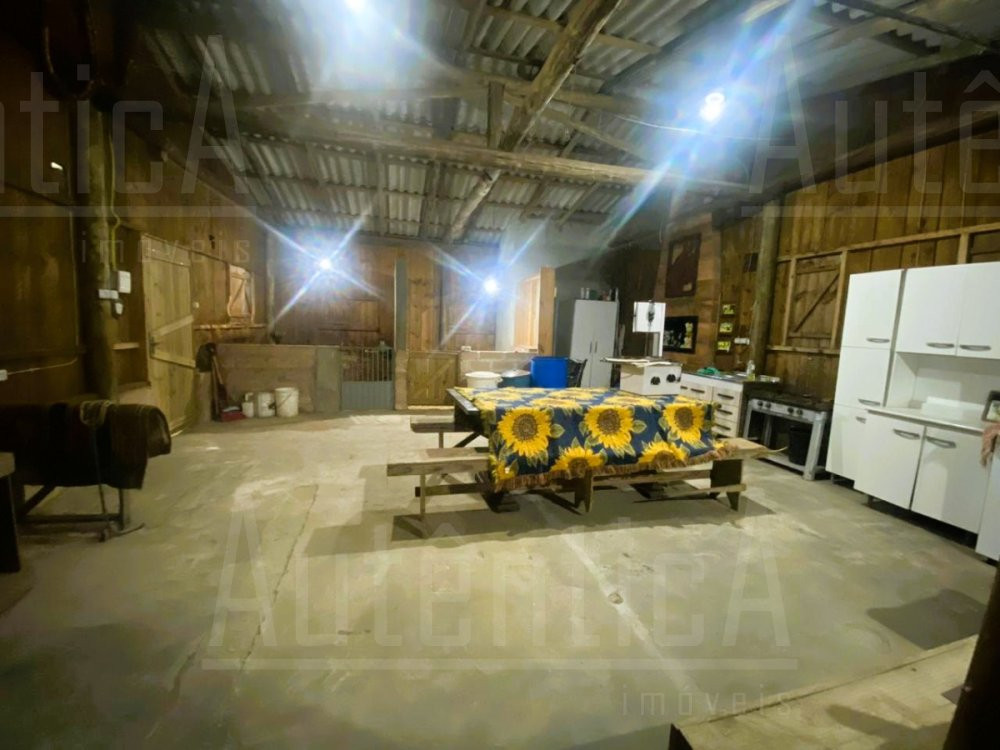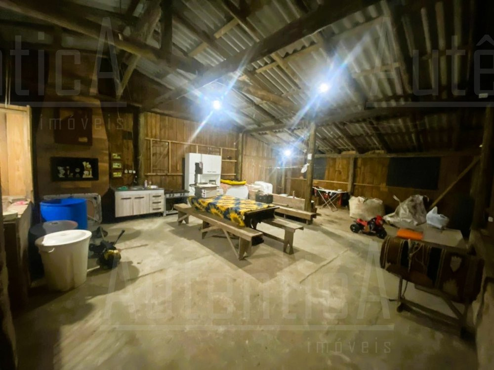 Possui um galpão de madeira, com área de 86,23m², ideal para múltiplas finalidades, com cozinha, banheiro, área de serviço, duas cocheiras e salão espaçoso.