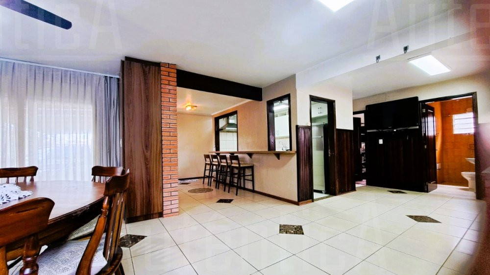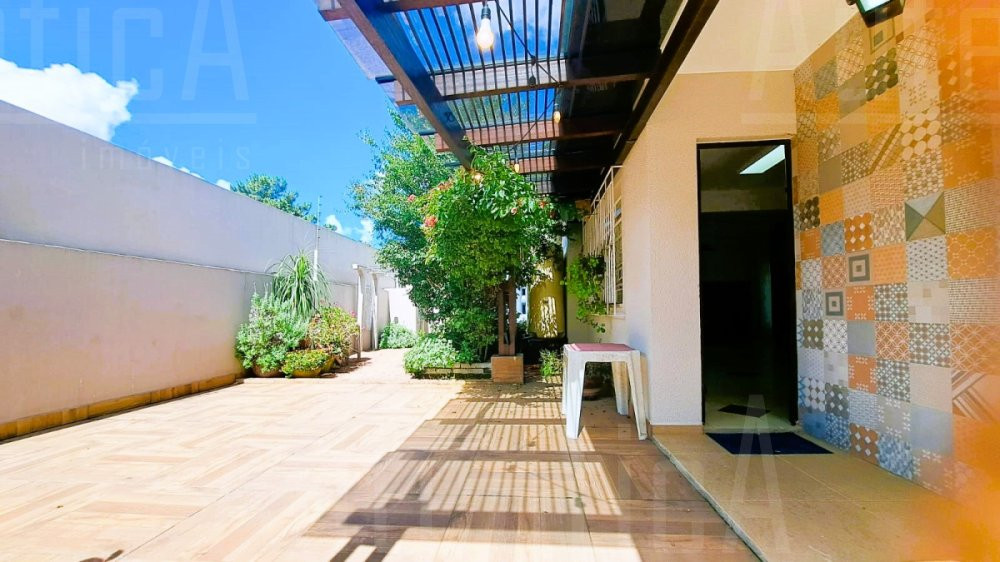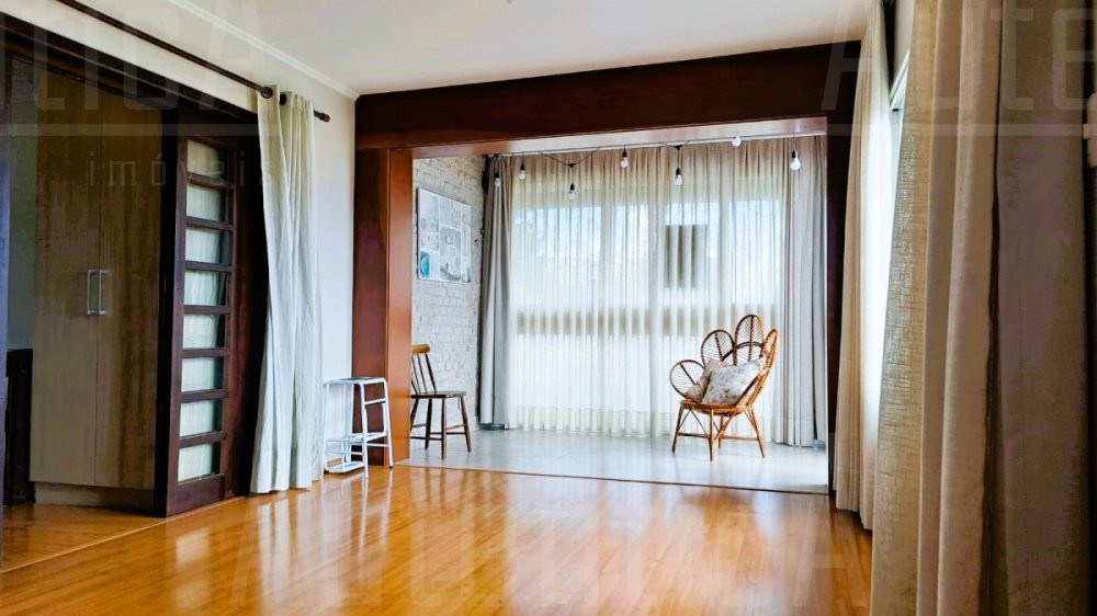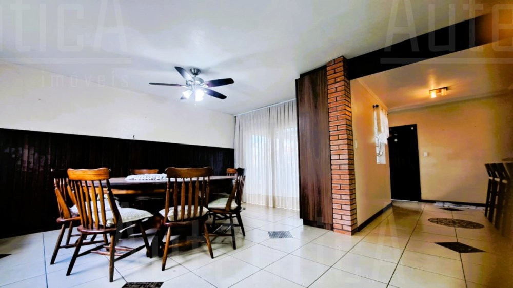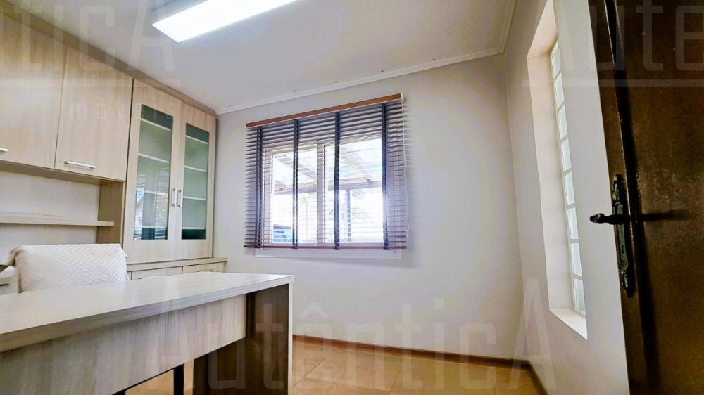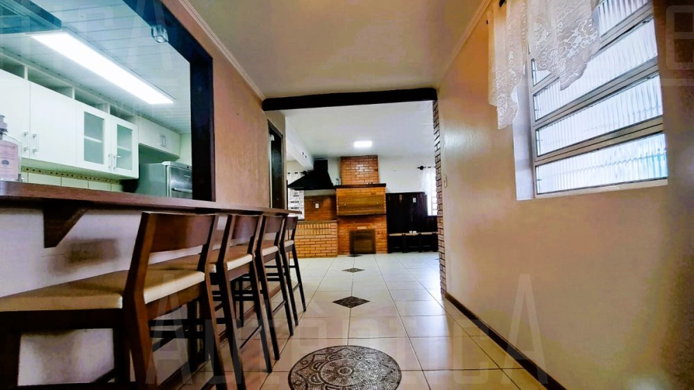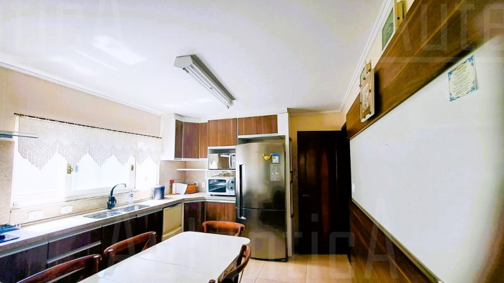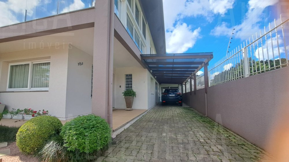 Primeiro pavimento: Sala principal com lareira, sala de TV, sala home office, cozinha, área de serviço, banheiro social, sala depósito, amplo salão de festas mobiliado, com cozinha, churrasqueira e fogão a lenha, área de garagem e estacionamento para 03 carros.