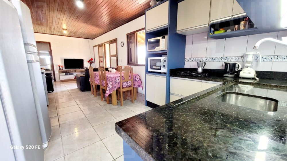 Casa conta com sala, cozinha, área de serviço, 5 dormitórios, sendo uma suite; 4 banheiros, além de um espaço externo com churrasqueira e cozinha,piscina;além de garagem coberta para até quatro carros.