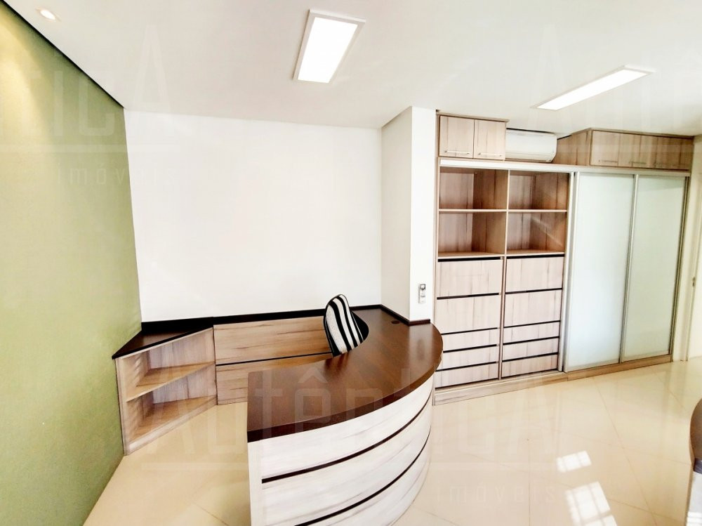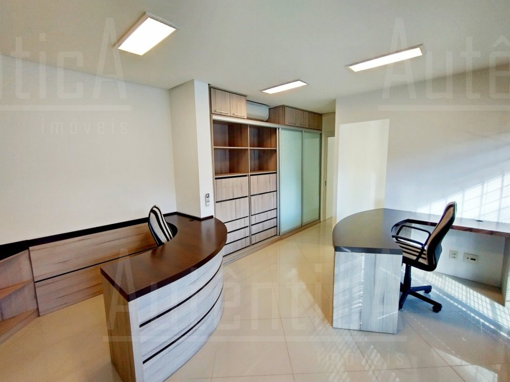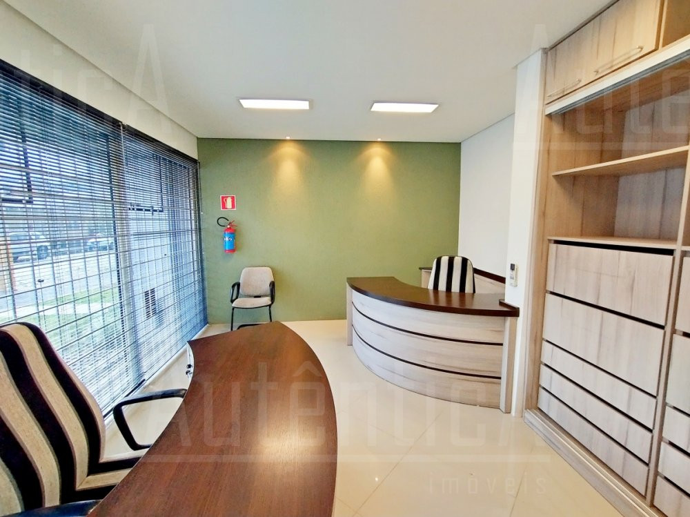 Ótima sala comercial térrea, sala de reunião, sala de Escritório com mesas, armários e ar condicionado Split, lavabo, espaço com pia para café e 02 vagas de garagem.