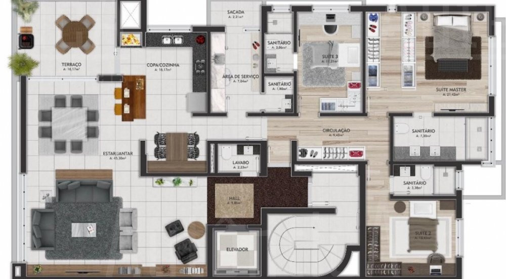Excelente apartamento com 3 suites, linda vista para a cidade, terreno com 3 frentes, esperas para automação, ar condicionado e calefação, espera de gás para lareira, churrasqueira individual, esquadrias de PVC com vidro duplo, infraestrutura de lazer e serviços, opção para gabinete, circulação com rouparia, elevador codificado, guarita com sistema de câmeras, garagem para 3 carros e depósito.