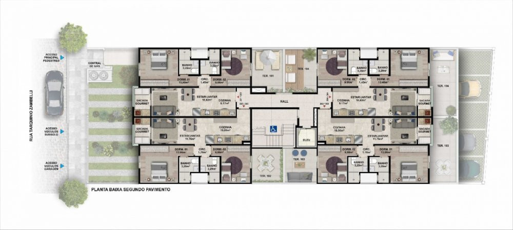 Apartamento com 02 dormitórios sendo uma suite, banheiro social, sala de estar, cozinha, área de serviço, sacada goumet com churrasqueira e vaga dupla de garagem, massa corrida, rebaixe em gesso. Prédio com elevador, bicicletário, gás central e hidrômetros individuais