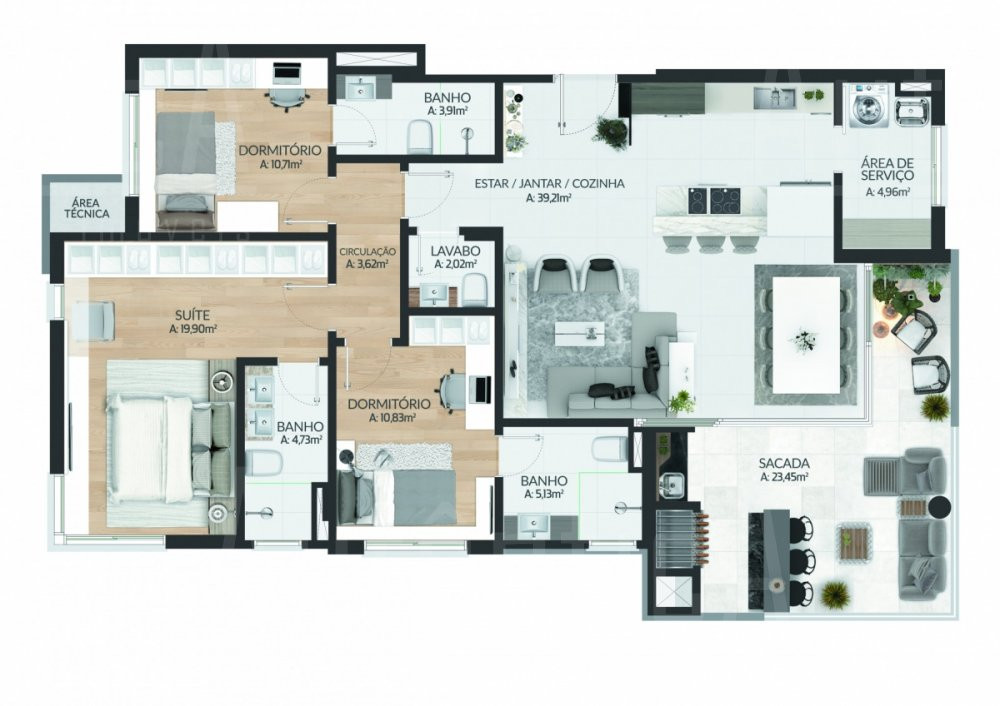 Lindo apartamento com 03 amplas suites, sala de estar e jantar, sacada gourmet, lavabo, cozinha, área de serviço, 03 vagas de garagem. Prédio de esquina, bem localizado, posição solar privilegiada, em bairro central, próximo às principais vias da cidade. Uma rara oportunidade aliada a um projeto arquitetônico sofisticado e imponente. Finos detalhes fazem diferença!!