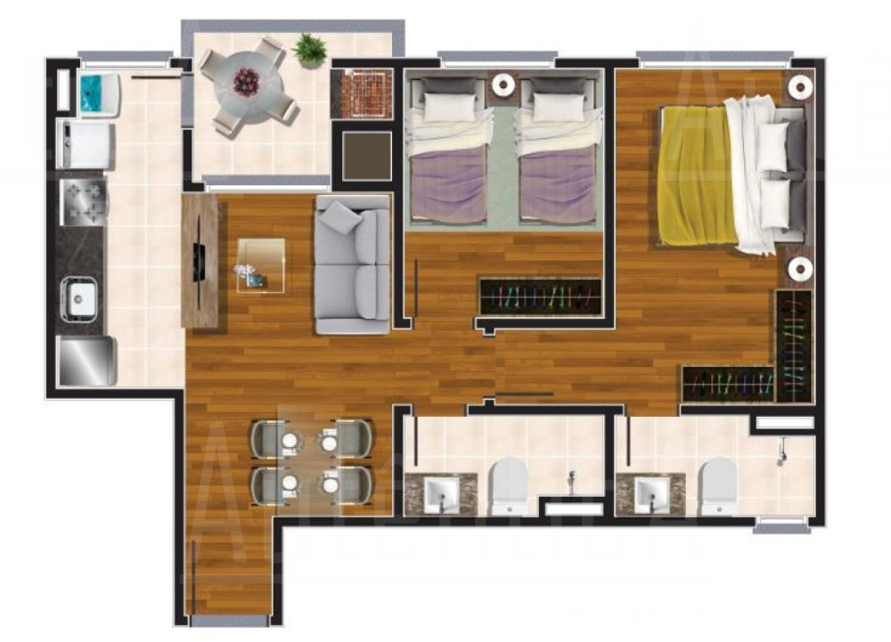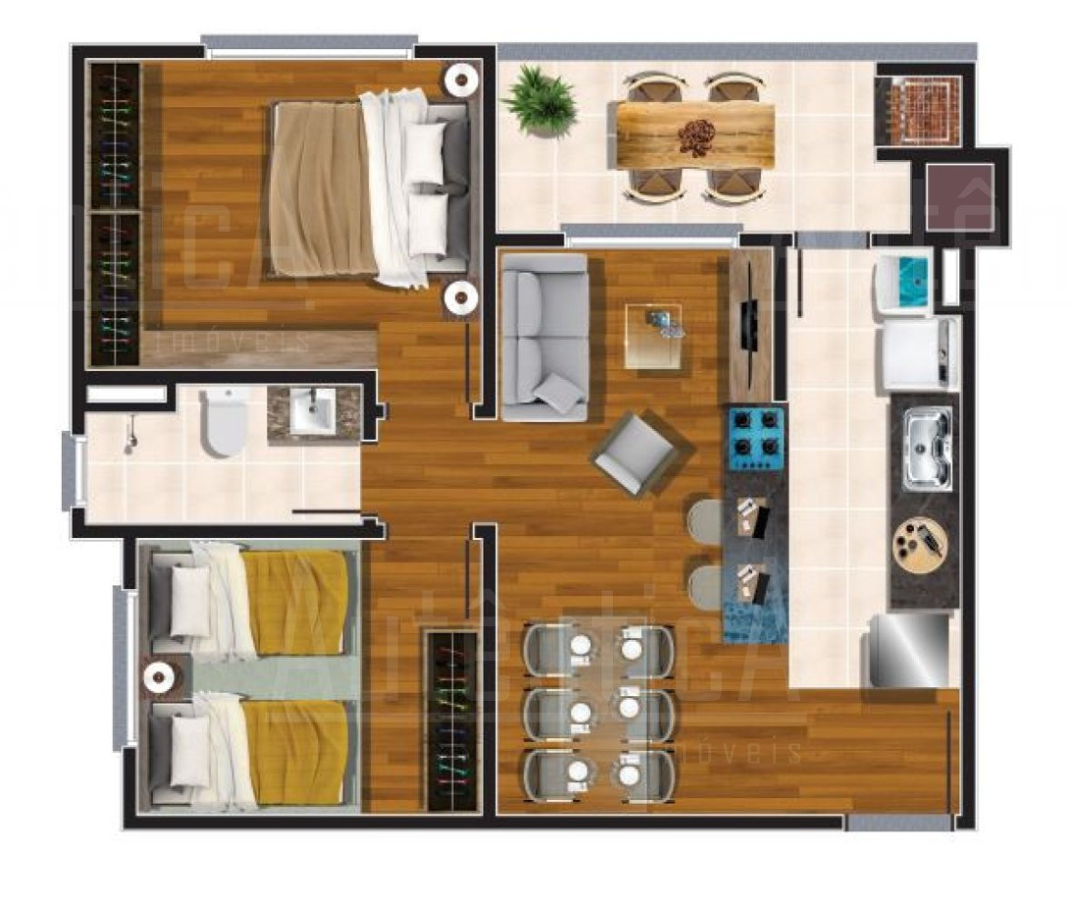 Apartamentos 02 dormitórios sendo uma suite, próximo a região central, sacada com churrasqueira, 01 vaga de garagem, medidores elétricos, água e gás individuais, baixo condomínio.