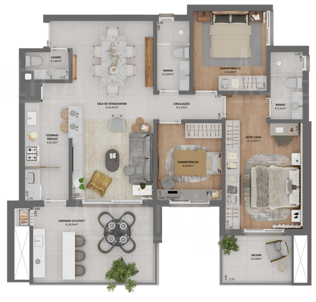 Excelente apartamento com três dormitórios, sendo um suíte, plantas customizáveis, espera para calefação, piso radiante e ar condicionado, living integrado com jantar e cozinha, ampla varanda gourmet, lavabo, esquadrias de PVC com vidro duplo, porcelanato na área social, elevador social e elevador de serviço. Ótima infraestrutura, com duas vagas de garagem.